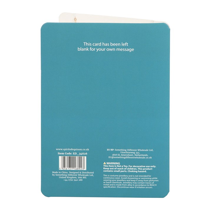 This dainty gold-tone stainless steel necklace features an all seeing eye pendant and comes beautifully presented on a turquoise greeting card adorned with star accents and the words 'Seen, Guided, Protected'. Includes a matching dark blue envelope with a coordinating all seeing eye design, making it a meaningful gift for any occasion. May contain traces of nickel and is made from alloy in accordance to REACH specification.