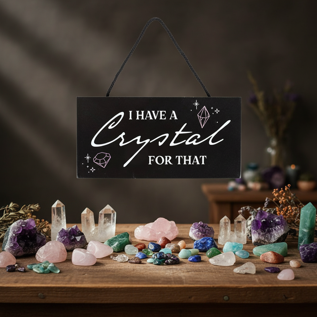 This enchanting hanging sign is perfect for crystal enthusiasts and lovers of mystical decor. Featuring fun 'I have a crystal for that' text inspired by the hot trend of crystal healing, this hanging sign makes an ideal addition to the home to embrace the magical aspects of life.