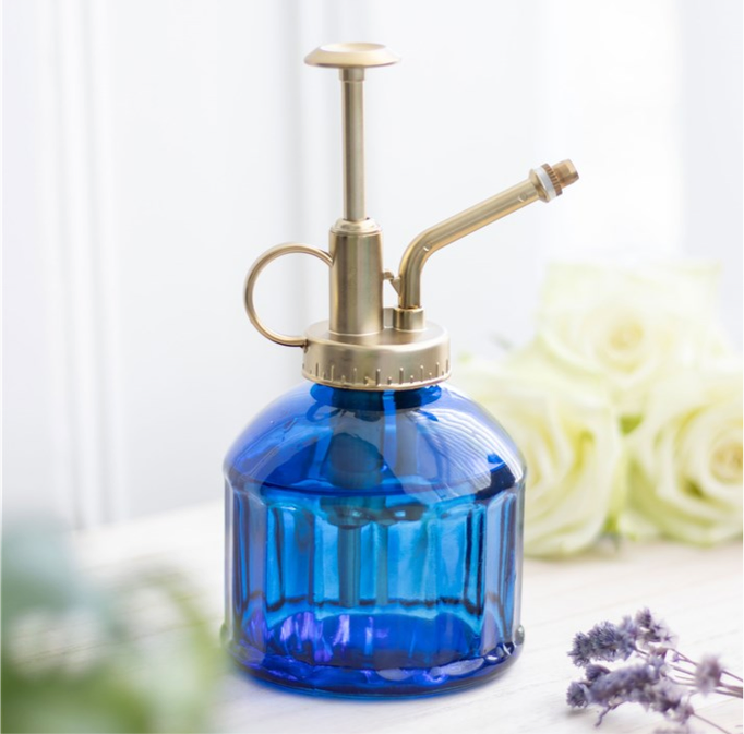 This simple blue glass plant mister has a lovely vintage feel and is the perfect gift for any indoor garden enthusiast. The glass is a rich blue colour and finished with a gold metal pump spray and thumb holder. Simply fill with water and use whenever plants need a delicate misting. 16cm in height.